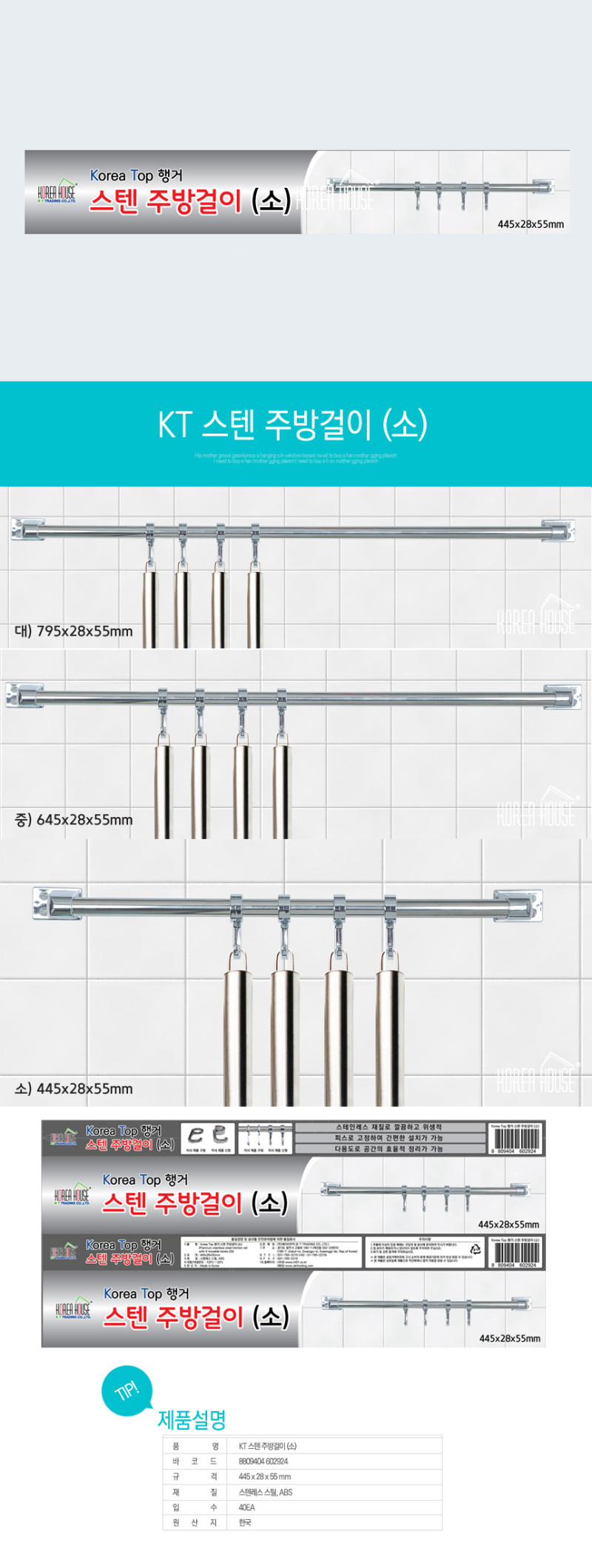 KT 스탠 주방걸이(소) 40EA