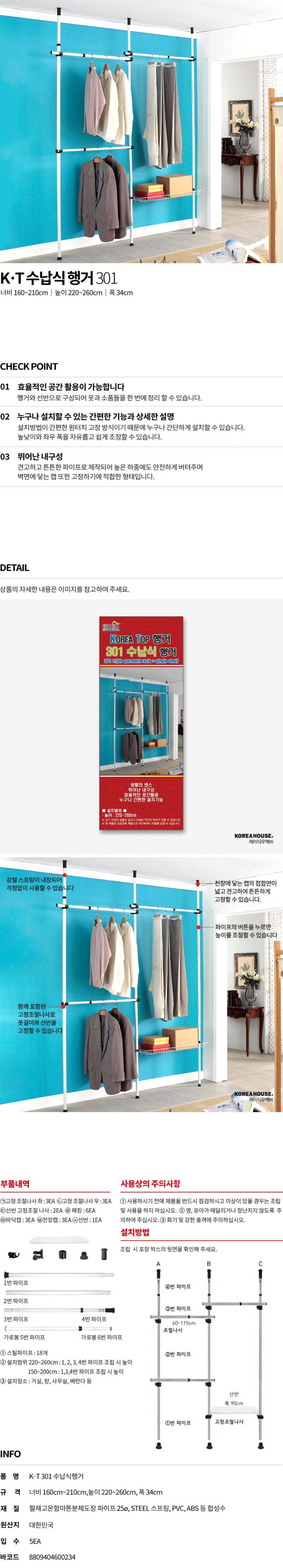 KT 301 수납식 행거 5EA