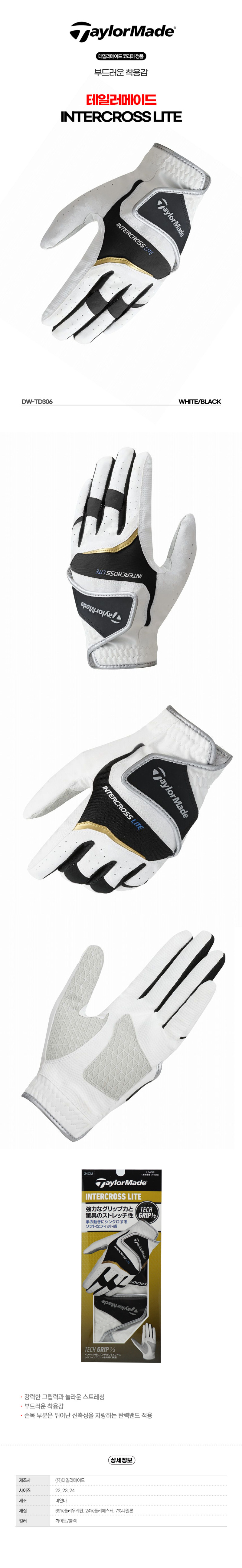 [테일러메이드] INTERCROSS LITE 남성장갑(TD306) 화이트 골프장갑 1 합피 왼손 1P
