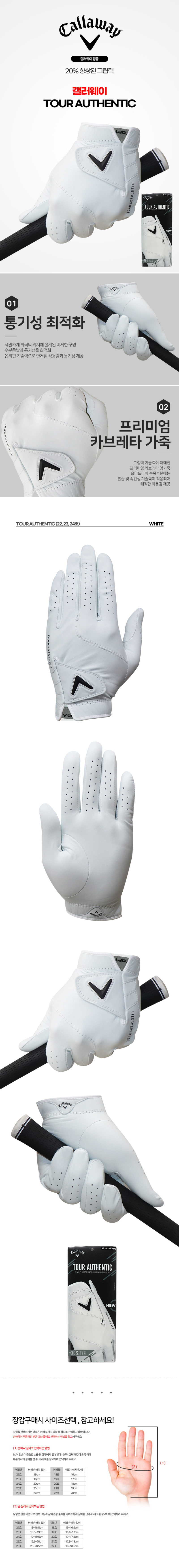 [캘러웨이장갑] CG TOUR AUTHENTIC 양피 여성 골프장갑 화이트 양피 왼손 1P 18/19/20/21호