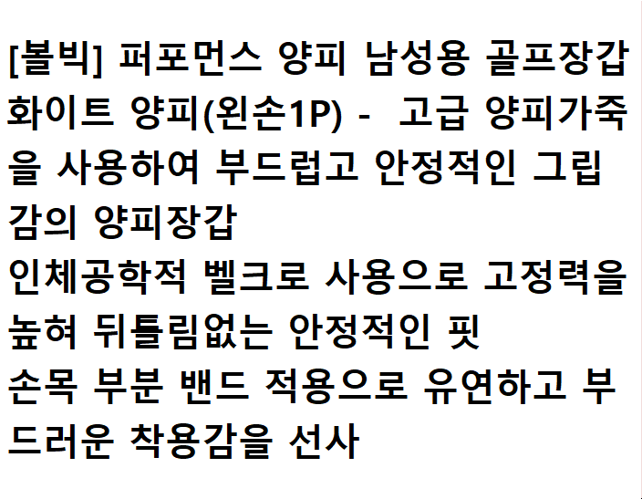 [볼빅] 퍼포먼스 양피 남성용 골프장갑 화이트  합피(왼손1P) | 쿠독 | 쇼핑 파트너 종합쇼핑몰과 도매플랫폼의 만남 COODOK