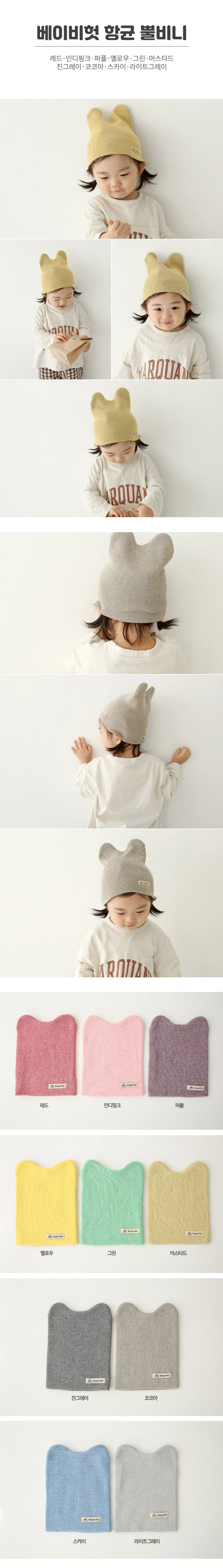 [베이비헛] 항균 뿔비니 / 색상선택 레드, 인디핑크, 퍼플, 옐로우, 그린, 머스타드, 진그레이, 코코아, 스카이, 라이트그레이