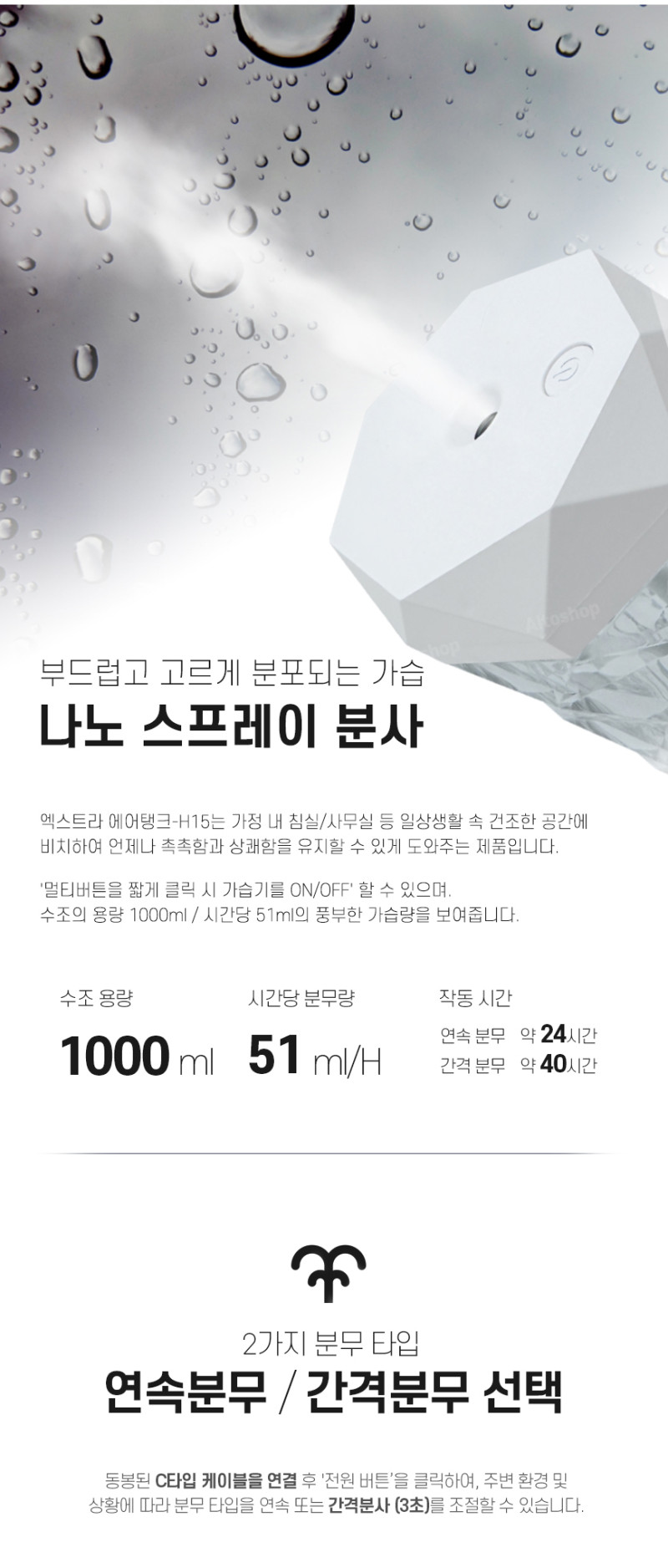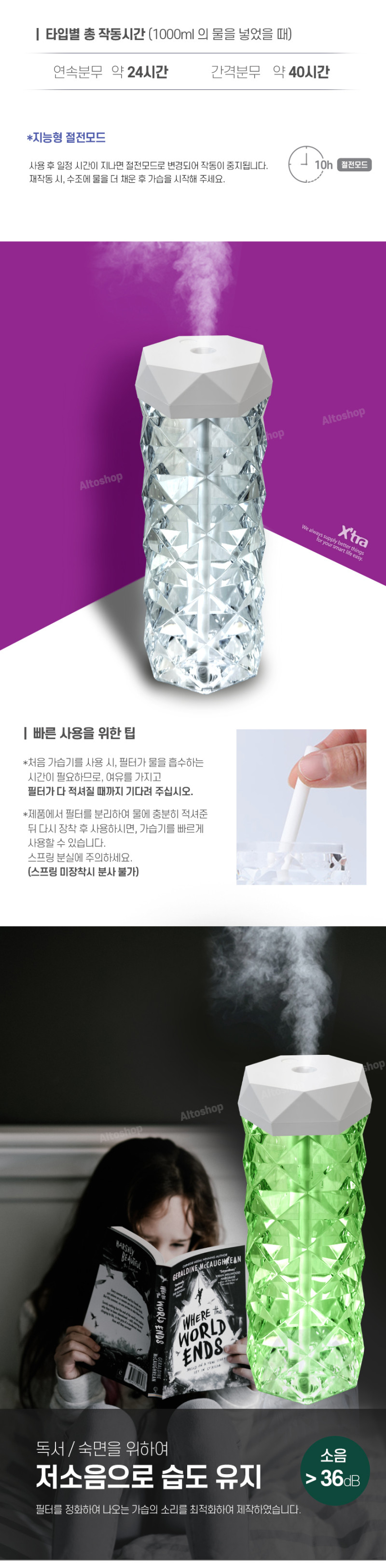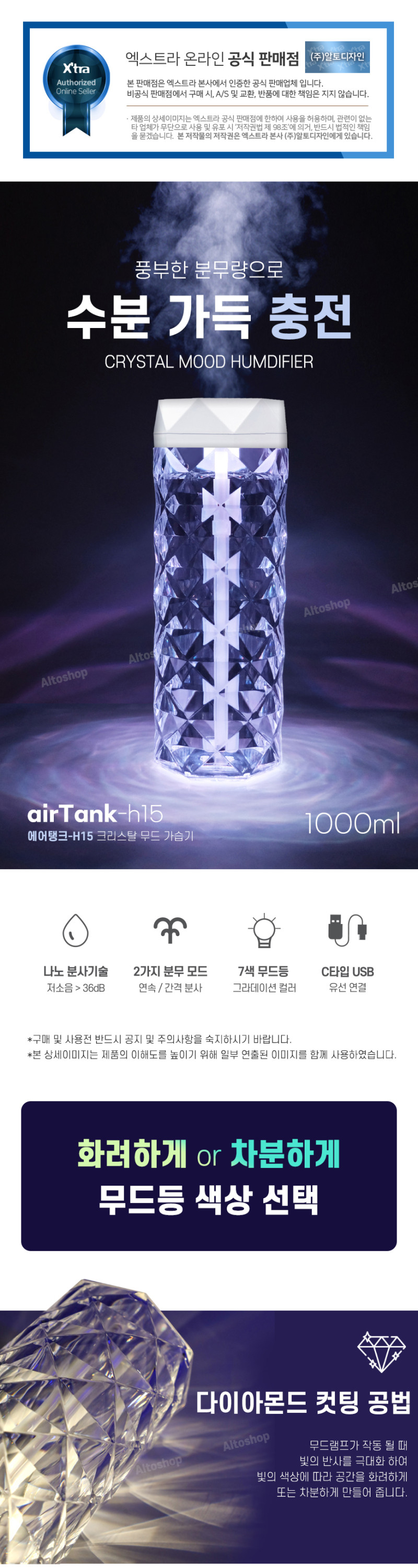 알토 엑스트라 에어탱크-H15 크리스탈 무드 유선 가습기 1대