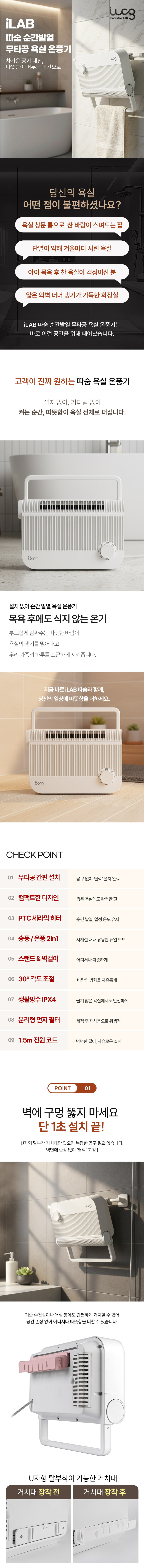 [iLAB] 아이랩 따숨 순간발열 무타공 욕실 온풍기 화이트 1대