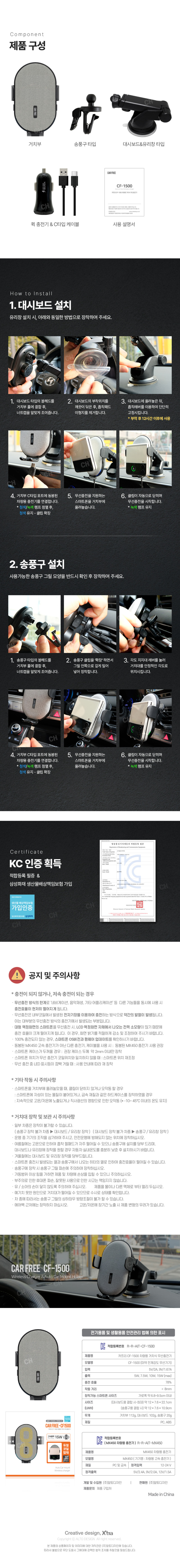 카프리 CF-1500 차량용 거치식 무선충전기 색상: 그레이
